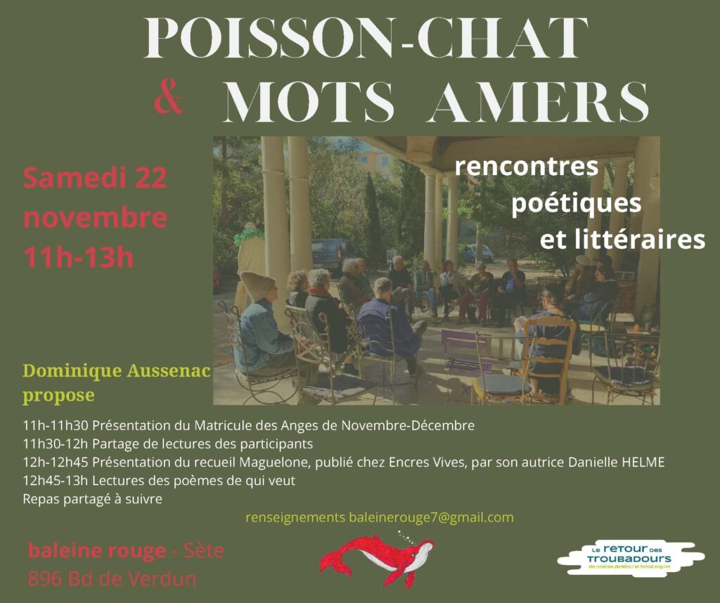 Rencontre poétique avec Danielle Helme autour de son recueil « Maguelone » | baleine rouge à Sète, 22 novembre 2025