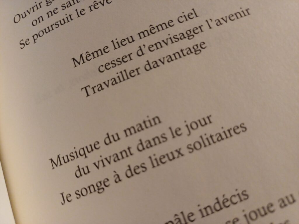 Une expérience s’est proposée au premier jour de l’an 2025. Elle est venue de Philippe, un ami d’écriture que j’avais connu comme libraire et membre du comité de rédaction d’une revue graphique et littéraire (La Piscine, 2016-2022). Il est venu vers moi aux dernières heures de 2024 avec ce projet d’écrire un poème par jour pendant l’année au bord de commencer.