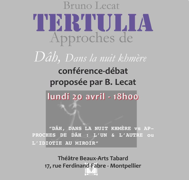 Lundi 20 avril, 18 h, au Théâtre Beaux-Arts Tabard de Montpellier. Entrez dans cette nuit illuminée des deux textes, scrutez-la : au fond, des spectres.