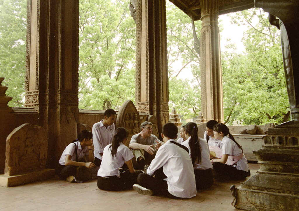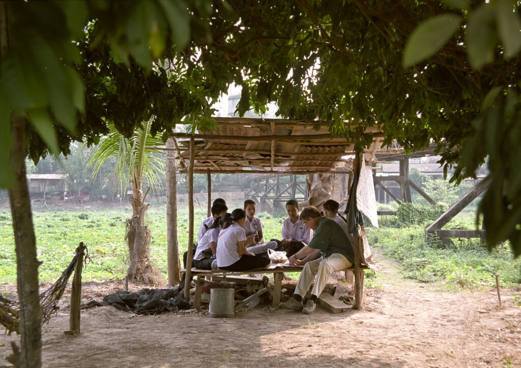 François P. Cherrier avec ses élèves- Atelier de poésie en errance, Vientiane (Laos), 2006
