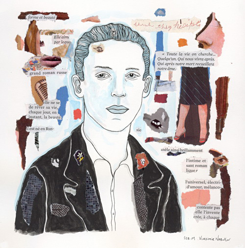 Vladimir Nabokov, 20 x 20 cm, technique mixte sur papier