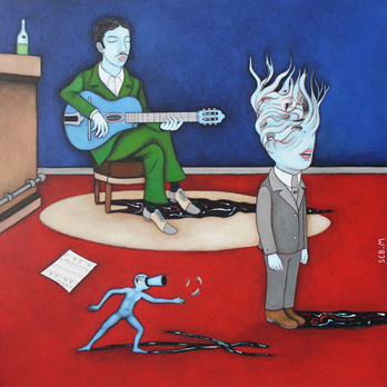 Illustration : Martine Trouïs, Le silence se moque, 90 x 90 cm, huile sur toile, collection particulière
