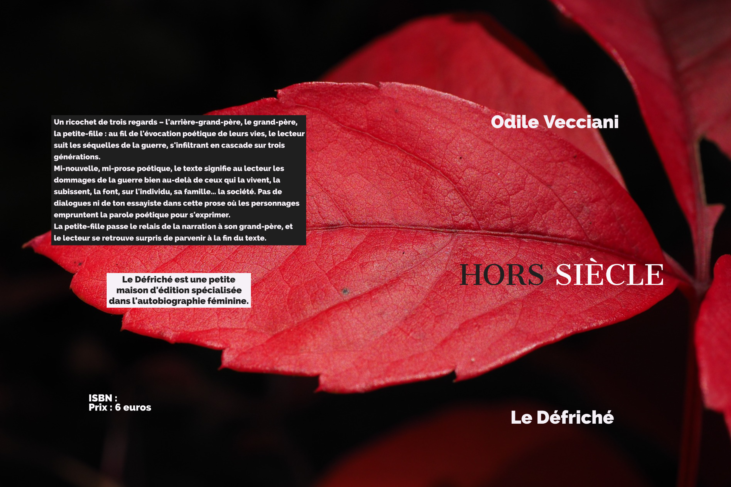 - Hors Siècle, nouvelle poétique, éditions Le Défriché, avril 2021